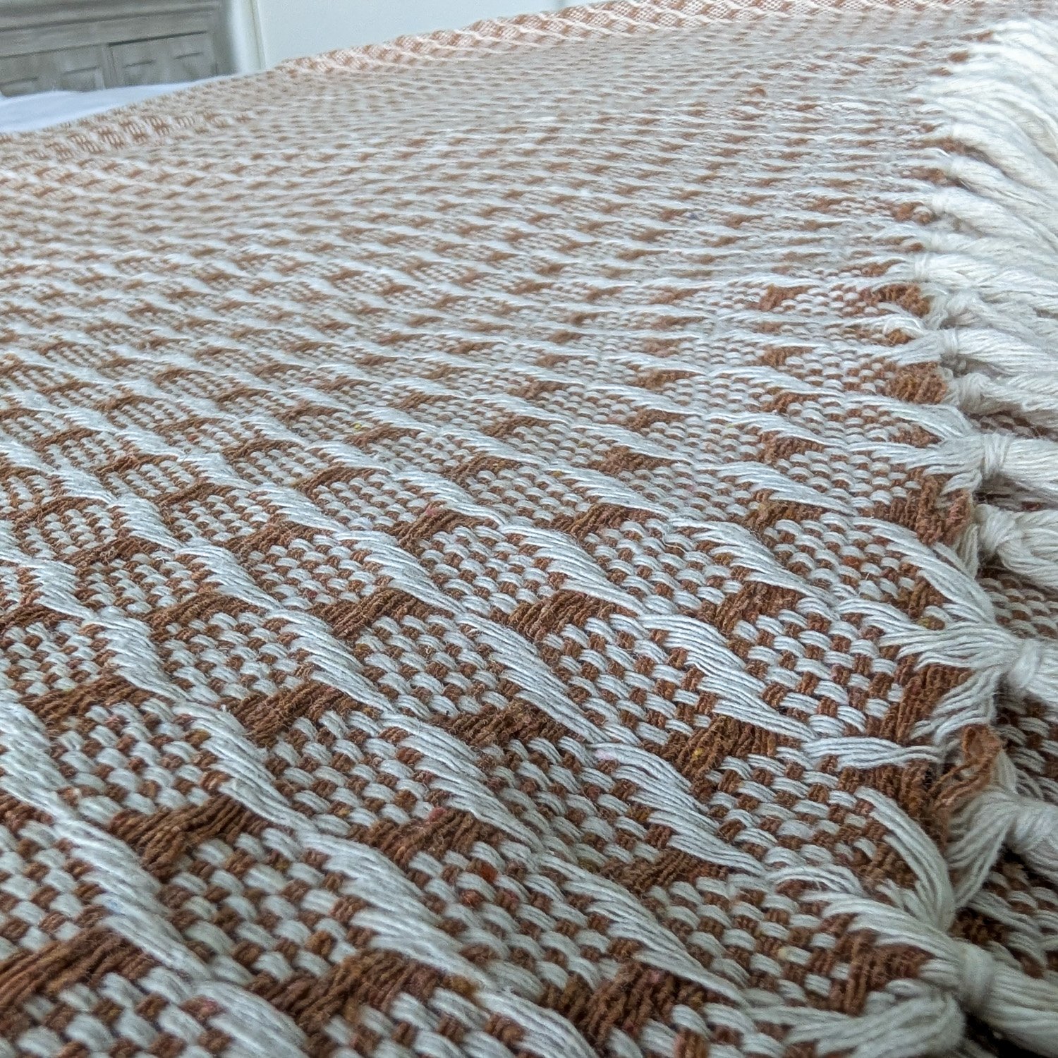 Caramel Shores envelops you in luxurious warmth with its rich caramel tones and weighted comfort that gently soothes the body. This complete Tranquility Collection set includes one substantial throw (96″ x 84″) and two coordinating pillowcases (28″ x 18″), creating a cohesive sleep retreat designed for ultimate relaxation. Handcrafted in Brazil from thick, breathable 100% upland cotton, Caramel Shores offers the unique combination of weighted comfort and air circulation—the specialized weave creates gentle, calming pressure while allowing breathability that prevents overheating during sleep. Perfectly balanced between softness and supportive weight, this throw cocoons without constricting, providing comfort that works in every season. The warm, inviting caramel colorway brings cozy sophistication to your bedroom, while the natural cotton fibers are skin-soothing and naturally hypoallergenic. The textile develops enhanced softness and character over time while maintaining its durable structure—a testament to quality craftsmanship and natural materials. Each piece showcases the subtle variations that come from authentic handcrafting, making your set genuinely unique. Caramel Shores represents the perfect marriage of weighted comfort and breathable natural fibers.