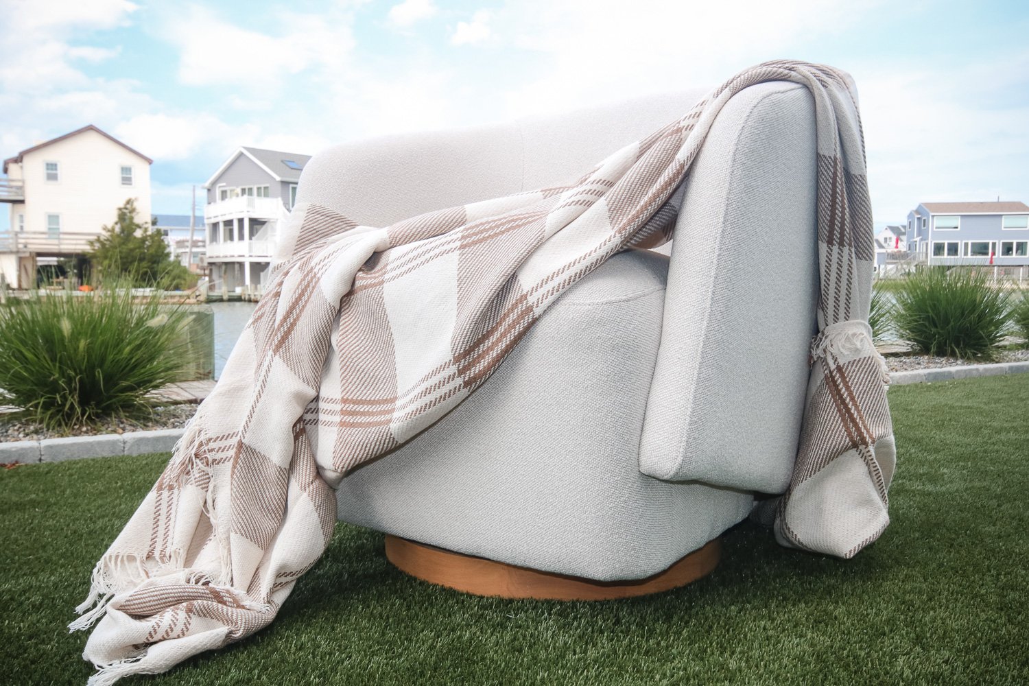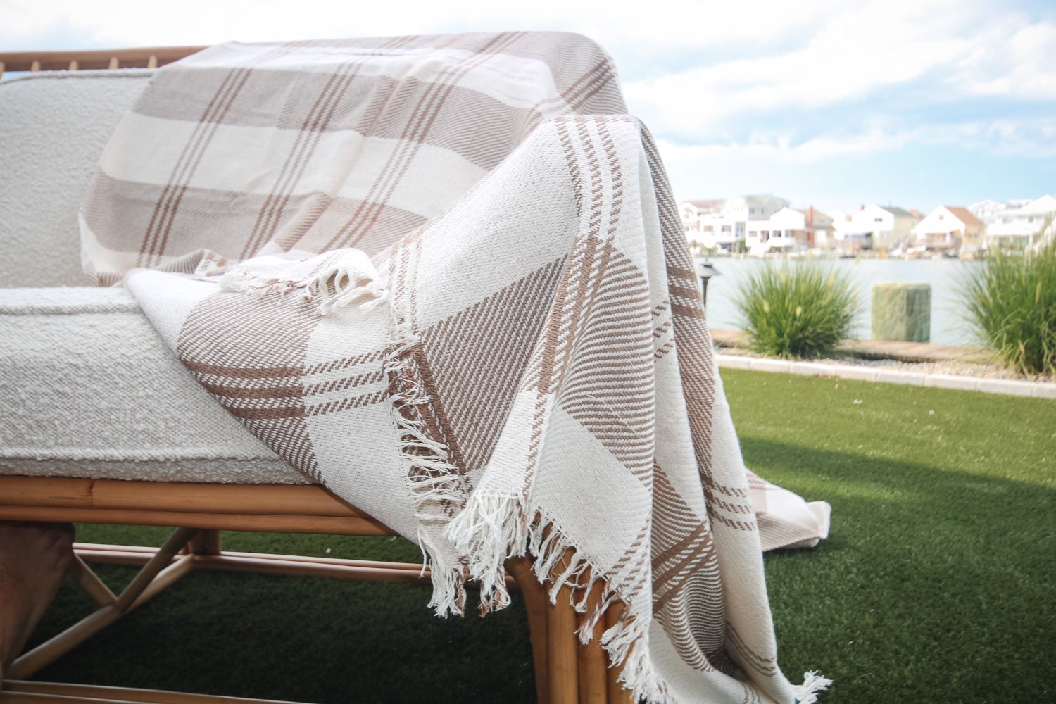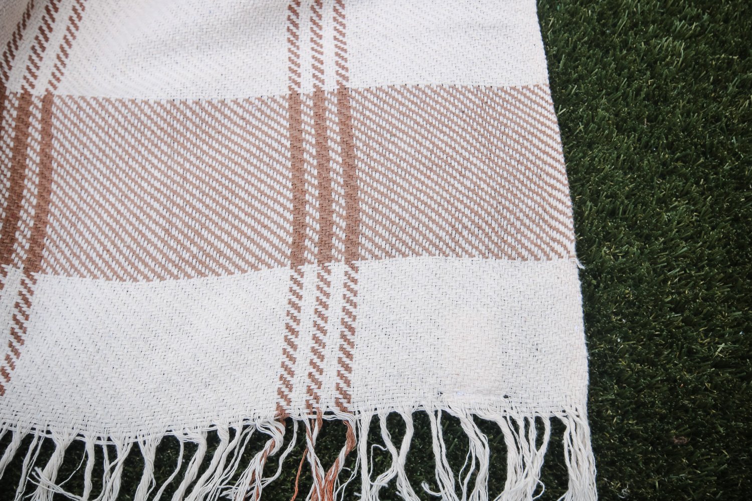 Earthy terracotta tones meet classic check design in this versatile throw. Clean lines and natural warmth for everyday elegance.