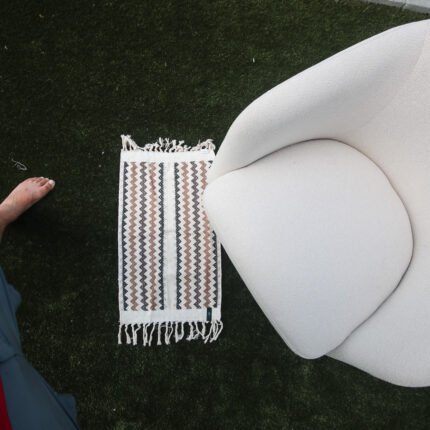 The mat’s surface tells a story through its carefully calibrated weave, where gentle variations in tone create depth and visual interest. Every stripe is thoughtfully positioned to create a sense of natural rhythm, while maintaining perfect tension throughout. The hand-knotted fringe isn’t simply decorative – it’s a celebration of traditional craftsmanship, with each tassel individually twisted and secured using techniques passed down through generations of Brazilian artisans.