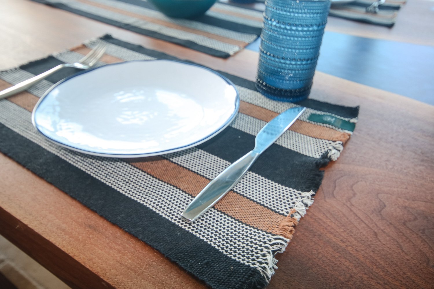 Midnight Clay brings dramatic sophistication to your table with its deep, earthy tones and richly textured weave. This 7-piece Mesa Collection set includes six handwoven placemats (12″ x 17.5″) and one elegant table runner (12″ x 35″), creating a complete tablescape that makes every meal feel special. Handcrafted in Brazil from 100% upland cotton, each piece offers the practical luxury of breathable fabric that resists staining while softening beautifully over time. The dark, complex color provides a striking foundation for any dishware, while the dimensional texture adds depth and visual interest to your table. The natural cotton creates a tactile dining experience that elevates everyday meals into memorable occasions, while the tight weave protects surfaces with lasting durability. Midnight Clay’s sophisticated palette works equally well for casual family dinners and formal entertaining, bringing versatile elegance to your home. Each piece showcases the subtle variations that come from authentic handcrafting, ensuring your table setting is uniquely yours. Transform your dining rituals with this perfect blend of artisanal beauty and everyday practicality.