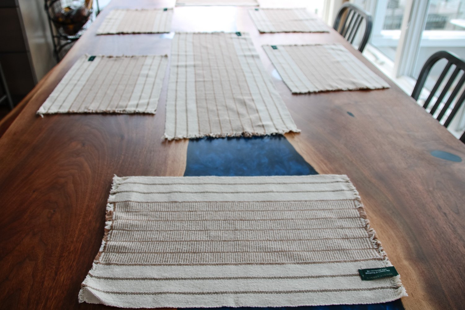Sandstone brings natural elegance to your dining table with its soft, sandy neutral tones and organic textured weave. This 7-piece Mesa Collection set includes six coordinating placemats (12″ x 17.5″) and one beautiful table runner (12″ x 35″), creating a cohesive foundation that allows your dishes and décor to shine. Handwoven in Brazil from 100% upland cotton, each piece features breathable fabric that naturally resists staining while developing enhanced softness with use—a hallmark of quality natural fibers. The subtle texture adds dimensional interest without overwhelming your tablescape, while protecting surfaces with artisanal charm. Sandstone’s versatile neutral palette complements everything from colorful ceramics to minimalist white dishes, making it perfect for both everyday meals and special occasions. The natural cotton provides a tactile warmth that synthetic linens cannot replicate, while the tight weave ensures durability for years of daily use. Each piece features the unique variations that come from authentic handcrafting, making your table setting one-of-a-kind. Sandstone represents the perfect marriage of understated beauty and practical function.