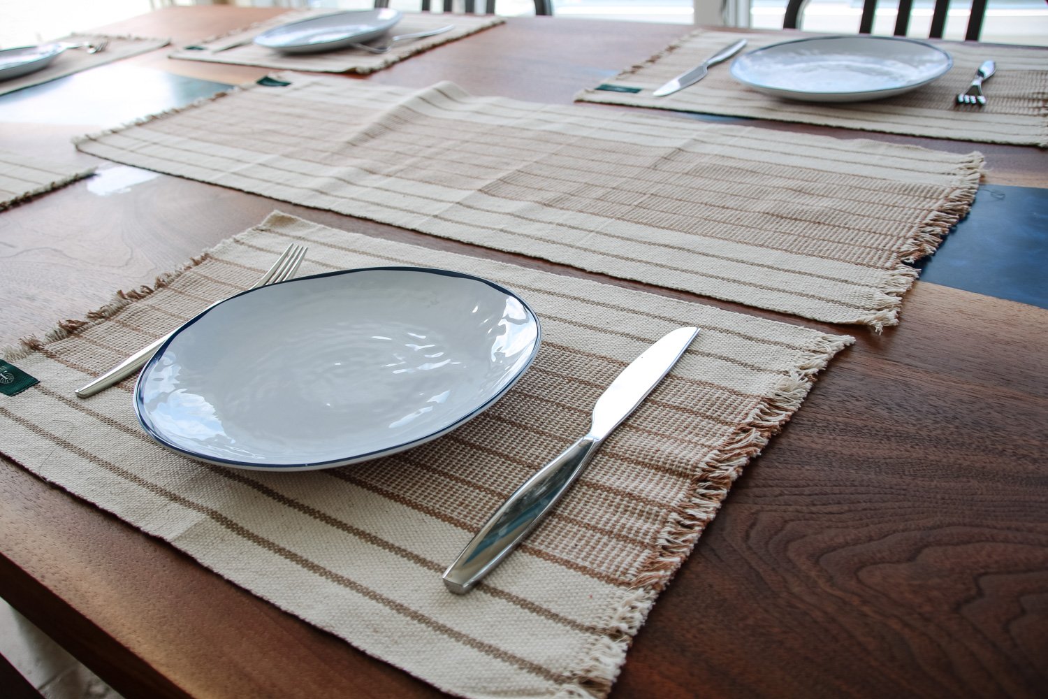 Soft, sandy neutrals with organic texture. Versatile elegance that complements any table setting.