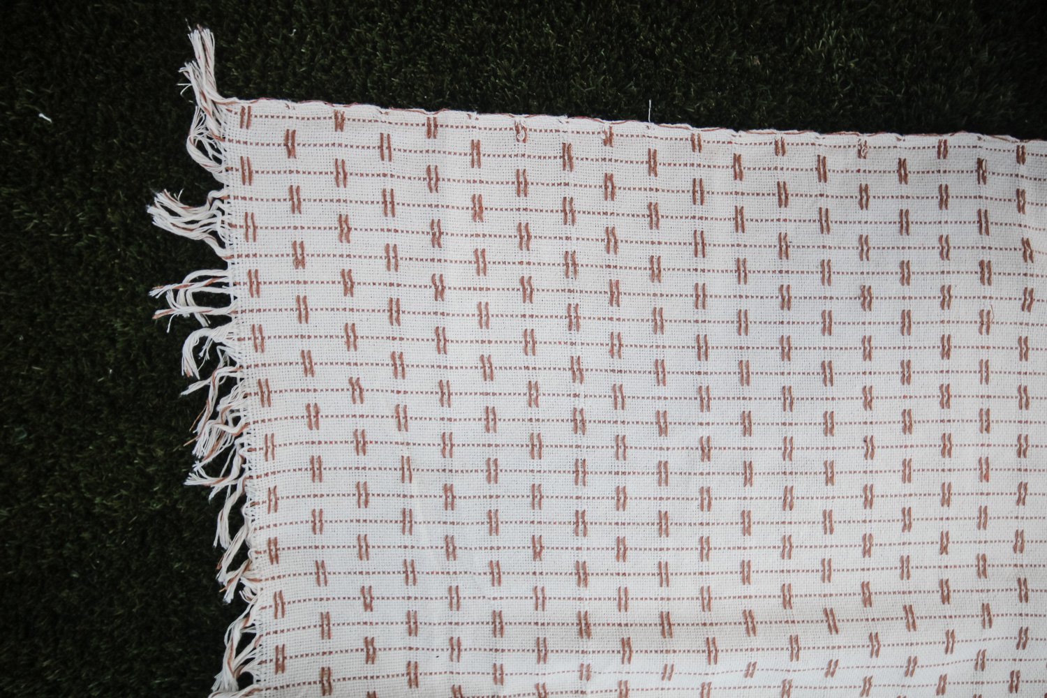 Subtle stepped pattern with airy grid structure. Modern coastal comfort in breathable cotton.